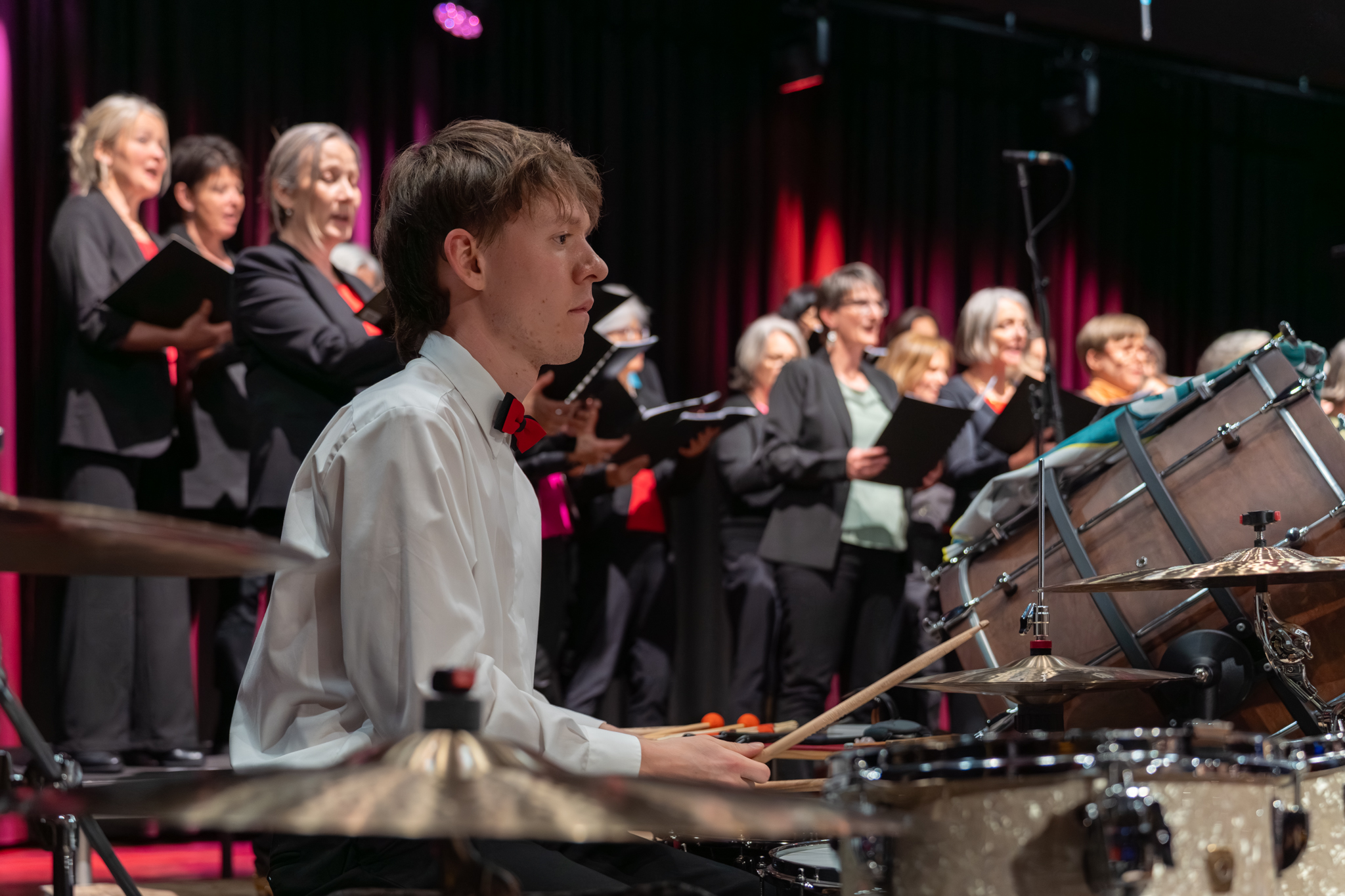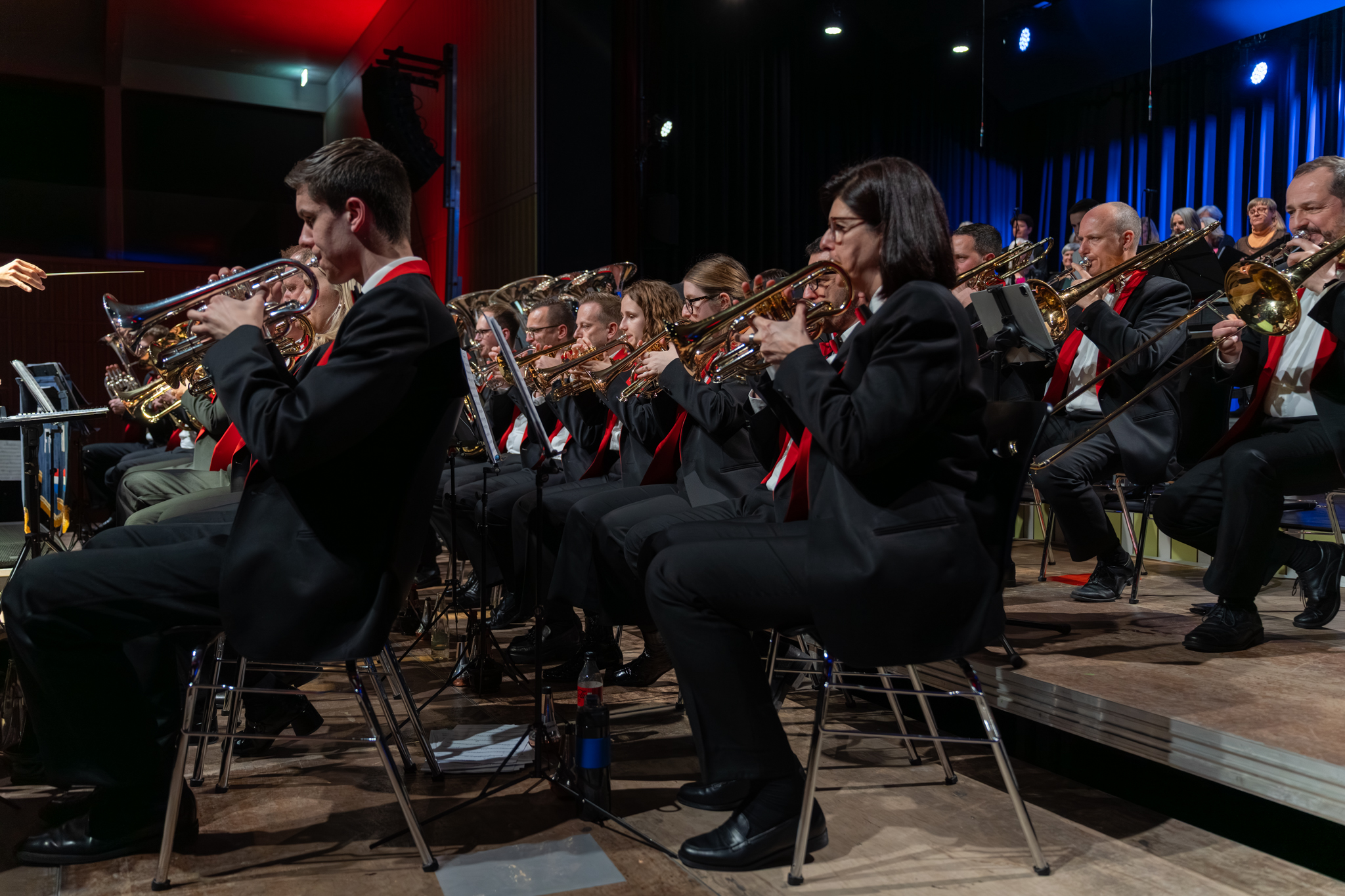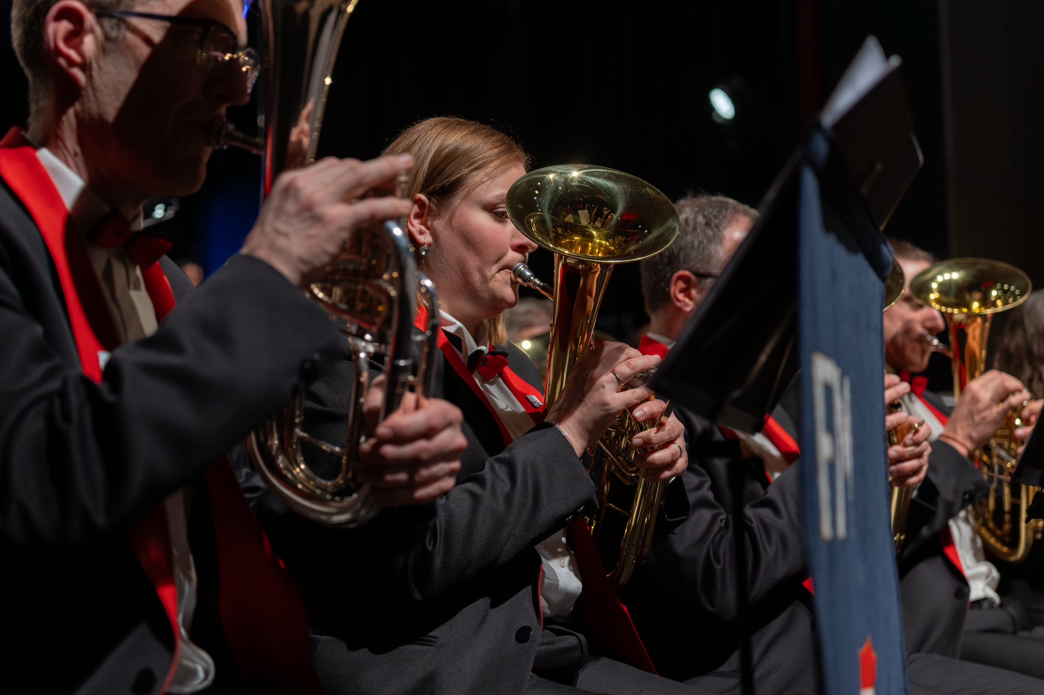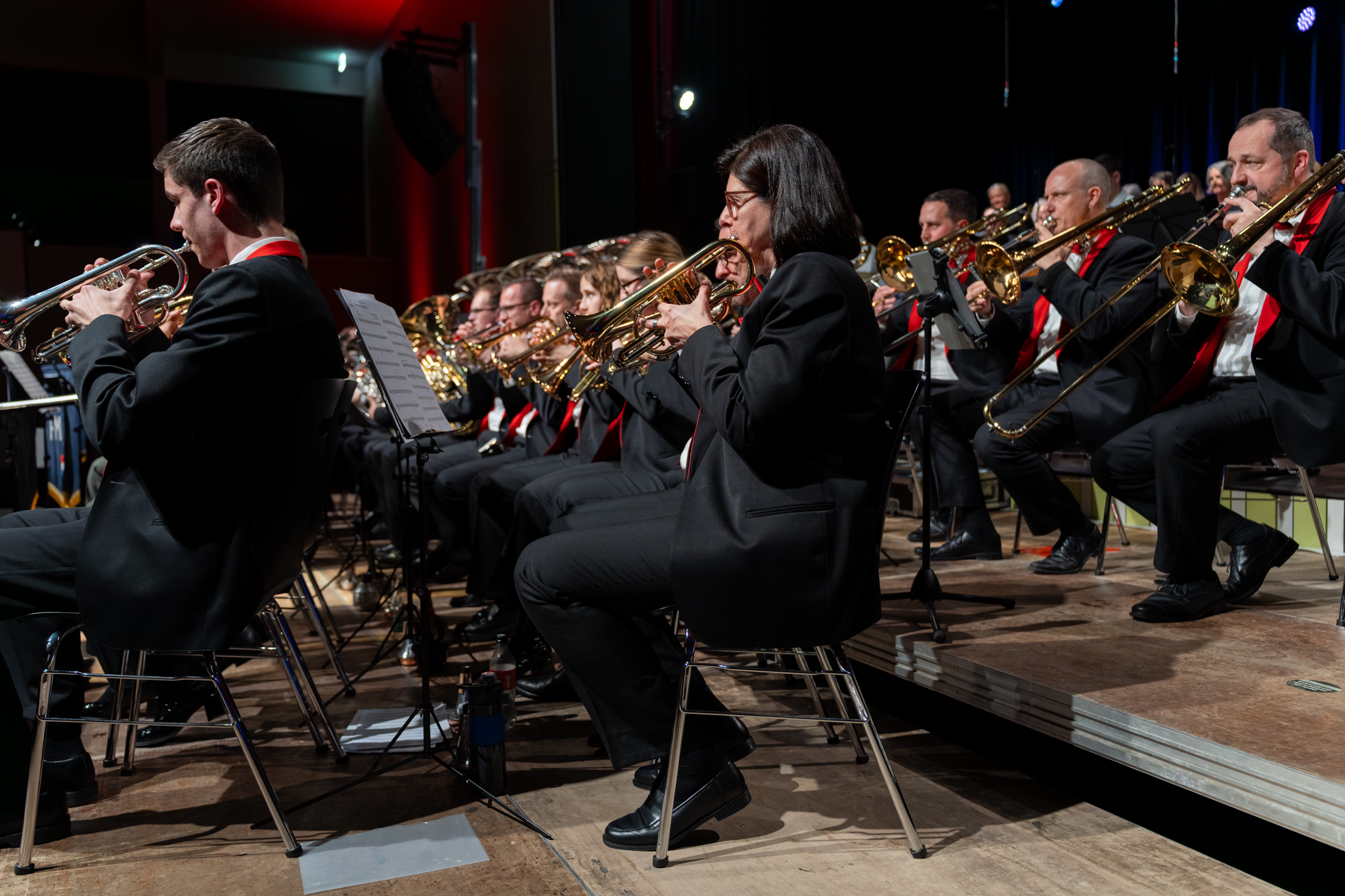 Am 28. März 2026 fand in der Chrüzacherhalle in St. Erhard unser Konzertevent Brass & Voices Kino für die Ohren statt. Zusammen auf der Bühne mit dem Frauenchor Donne Cantabile war dieses Konzert vollgepackt mit einigen Highlights. Das Publikum kam in den Genuss von kraftvollen Brass Band Klängen und ausdrucksstarken Stimmen des Chors.